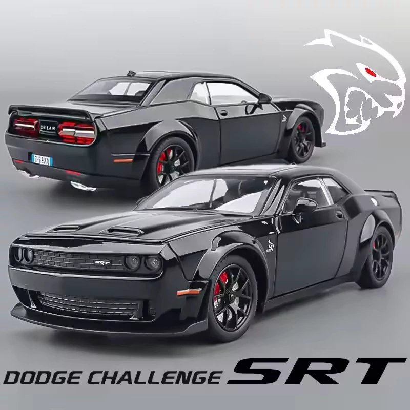 ماکت دوج چلنچر مقیاس 1,24 تمام فلزی برند باکیفیت chezhi با قابلیت جذاب دودزا تمام درب ها بازشو - بوق روی فرمان - چرخ فرمان پذیر آینه ها تاشو - عقب کش