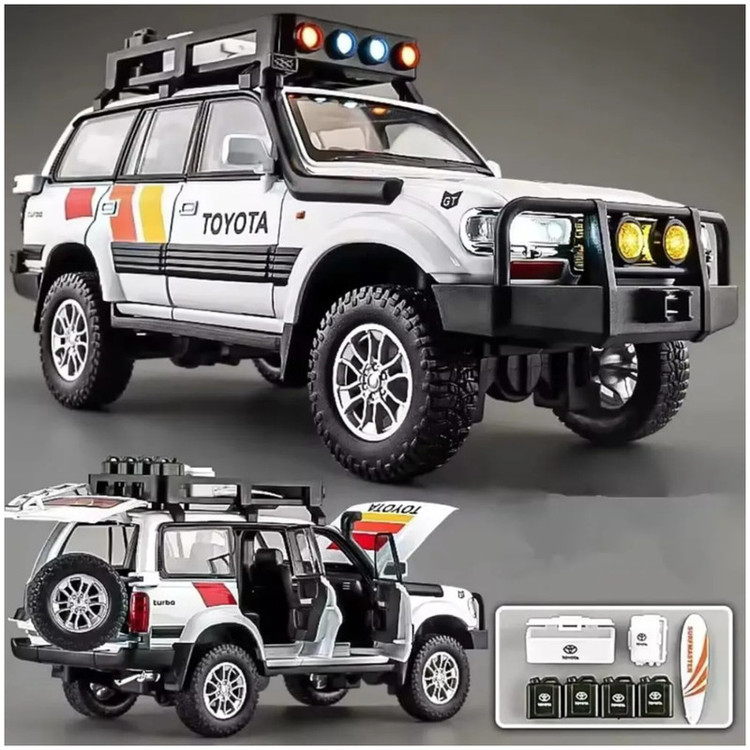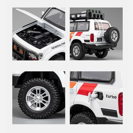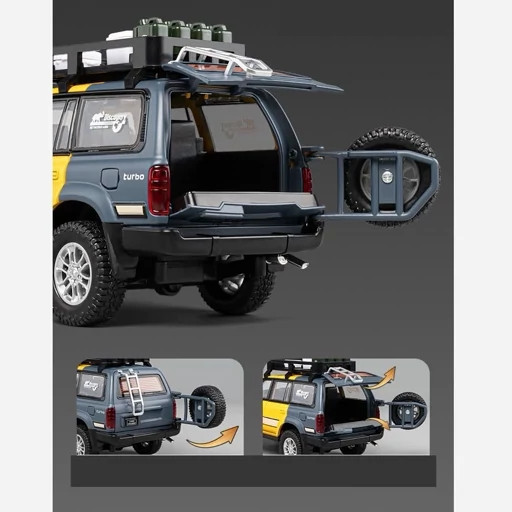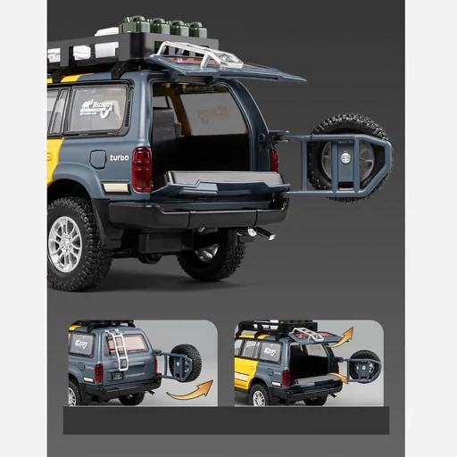 فلزی و تمام درب ها باز شو - موزیکال و چراغدار - بوق روی فرمان - چرخ ها فرمان پذیر - درب باک باز شو - عقب کش