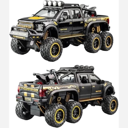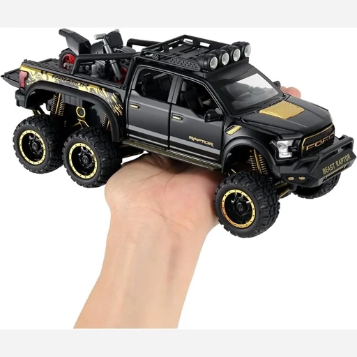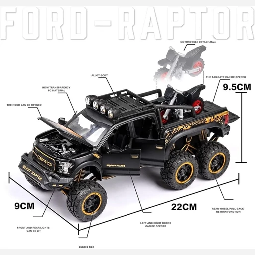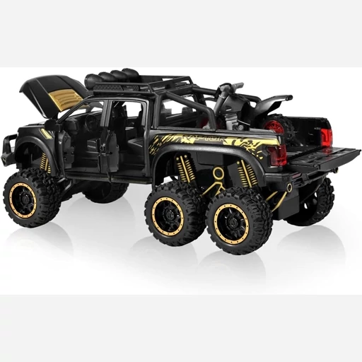 ماکت فلزی فورد رپتور آفرود مقیاس 1,24 طول 21 سانتی متر تمام درب باز شو موزیکال و چراغدار - دزدگیر درب ها - عقب کش دارای یک موتور کوچک